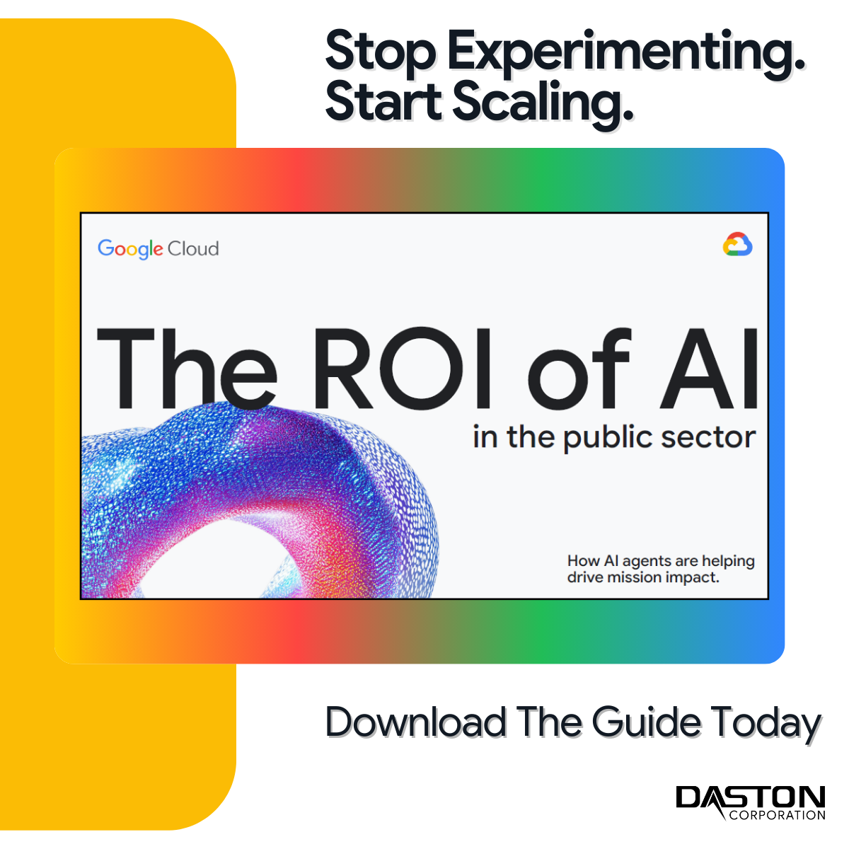 As Federal, SLED (State, Local, and Education), Department of War (DOW), and civilian agencies face increasing pressure to do more with less, AI agents have emerged as the primary vehicle for delivering measurable Return on Investment (ROI). Recent data reveals that 55% of public sector leaders have already moved AI agents into production. This isn’t just a pilot phase; 42% of these organizations have deployed more than ten distinct agents to handle complex workflows. Download Google Public Sector latest whitepaper and contact Daston’s Google team of experts today to let us help you modernize your agency today!